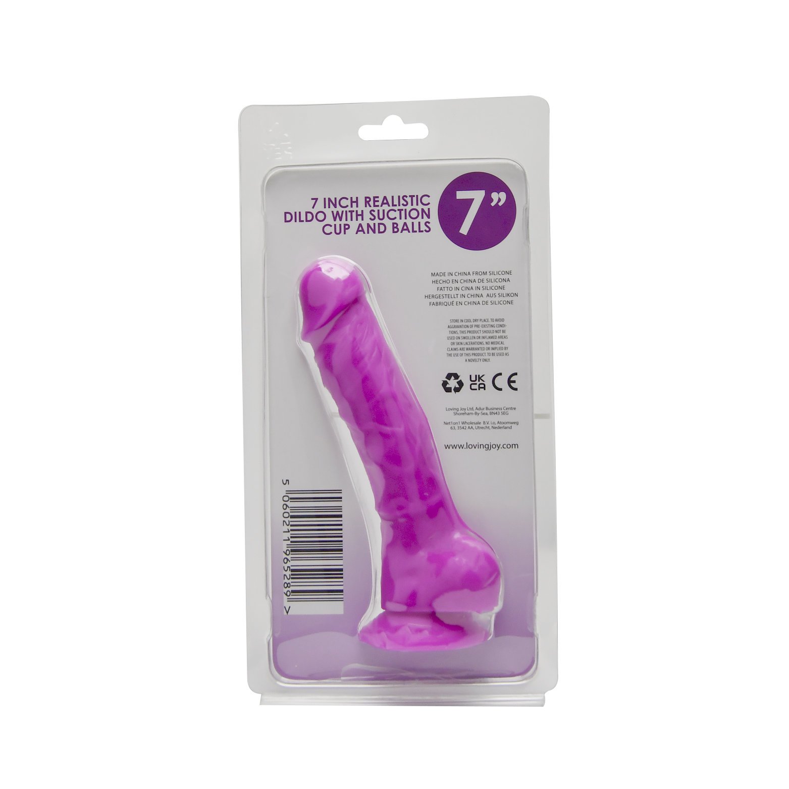 Loving Joy 7 Inch Realistic Silicone Dildo with Suction Cup and Balls Purple